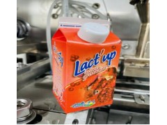屋顶盒纸盒片→底部预成型→底部加热→底部压封成型→超声波加盖→顶部预成型→灌装→顶部封合成型→打印日期→屋顶包产品。